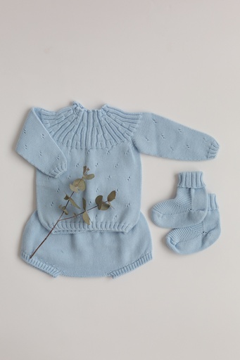 Jersey, cubrepañal y patucos Azul vintage